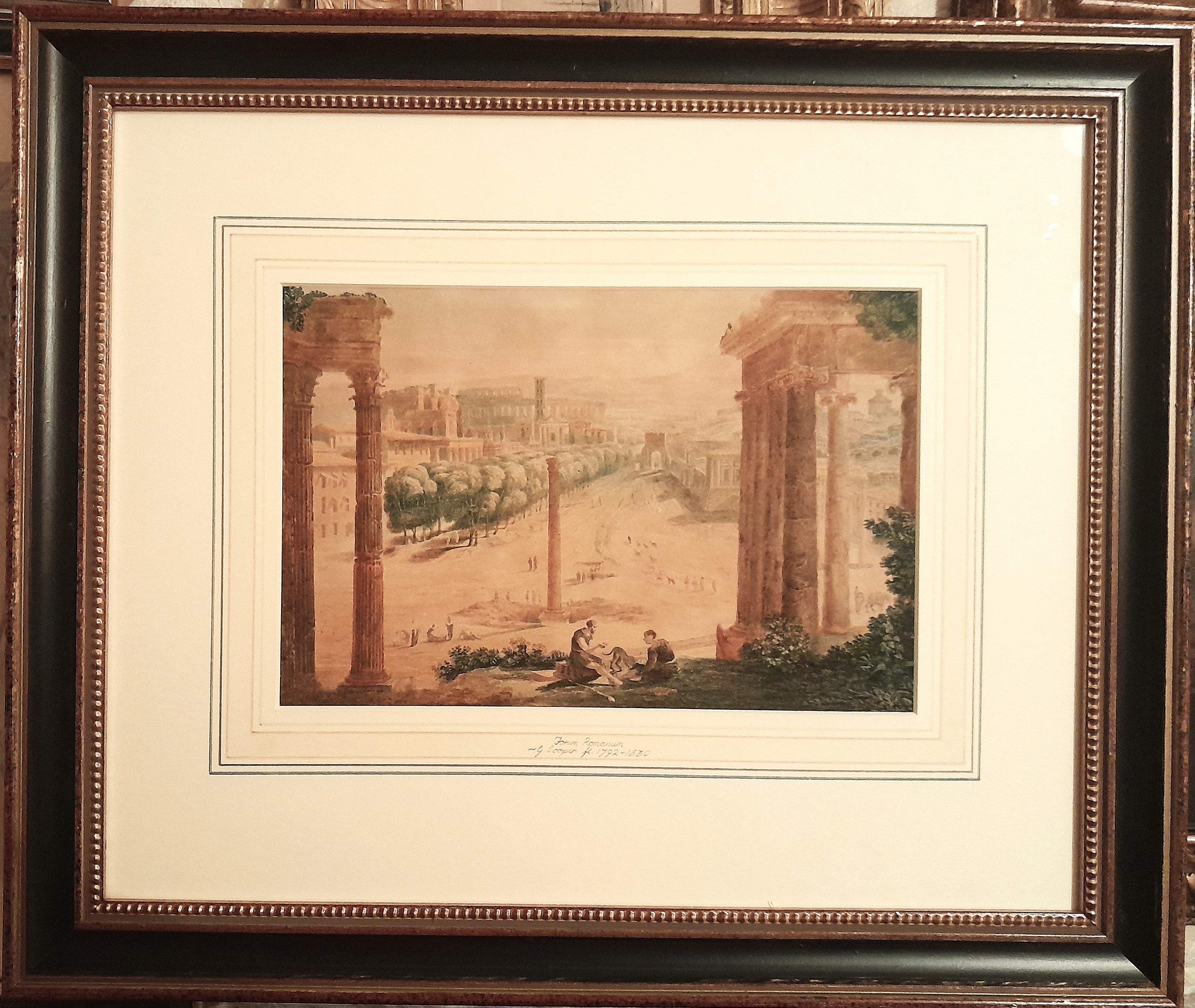 Description: Watercolour framed with image clear UV glass. George Cooper, British, 1792-1830- View of the Roman Forum; watercolour on paper, 255x165mm Provenance: with Abbott & Holder Ltd., London. George Cooper was an architect who exhibited topographical drawings at the R.A. from 1792 to 1830. The present work is a typical example of his landscapes and architectural views which were clearly informed by visits to Italy.