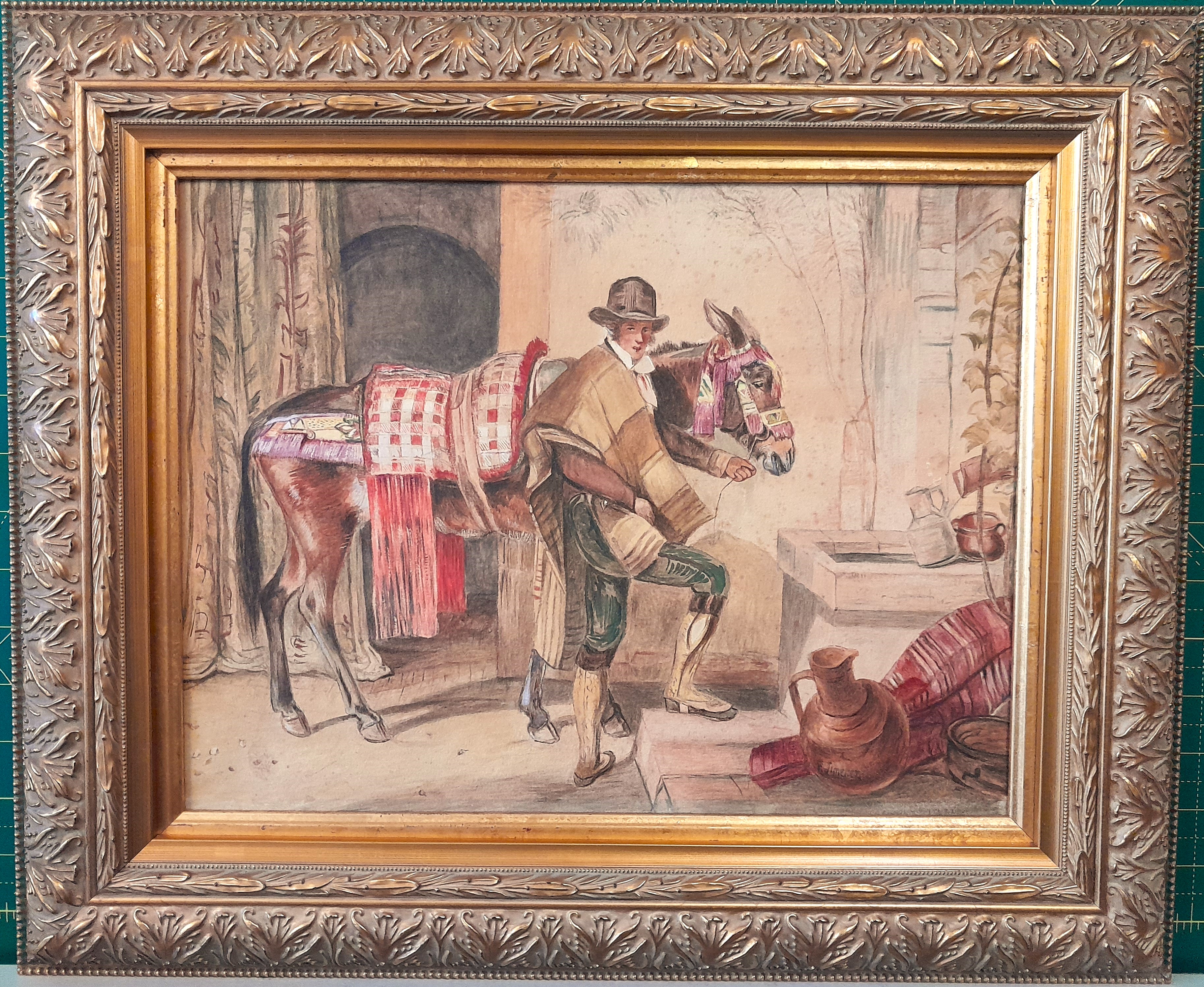 Description: Watercolour in a gold leaf frame with UV image clear glass, by Clarkson Stanfield. Stanfield made multiple trips to Italy, including his first tour in 1824, which was with William Brockedon. In 1830 Stanfield travelled through Germany, Switzerland, Austria, and Italy to Venice. The Grand Tour was a traditional trip through Europe, with Italy as a key destination, that was undertaken by upper-class young European men in the 17th to early 19th centuries.