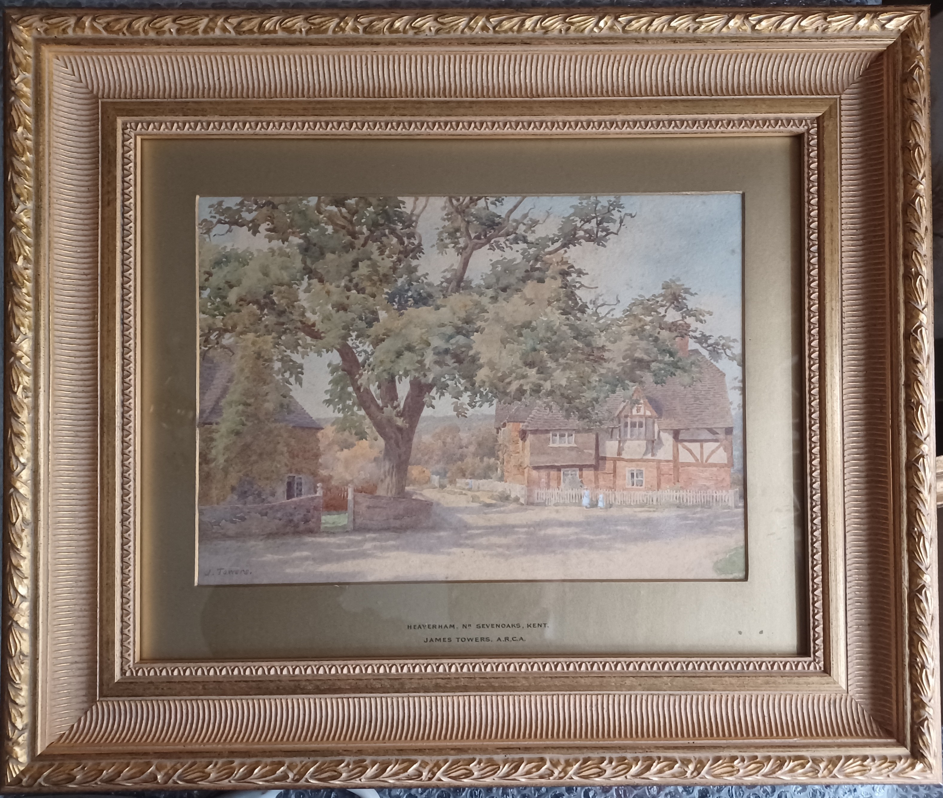 Description: Watercolour of a village cottage in the village of Heaverham, Sevenoaks, Kent. James Towers Liverpool (1853-1950) was a British (RA) ceramicist, painter and sculptor, born in Kent. He studied painting at the Royal Academy (1938-1940), where he won the Gold Medal for Painting in 1939.