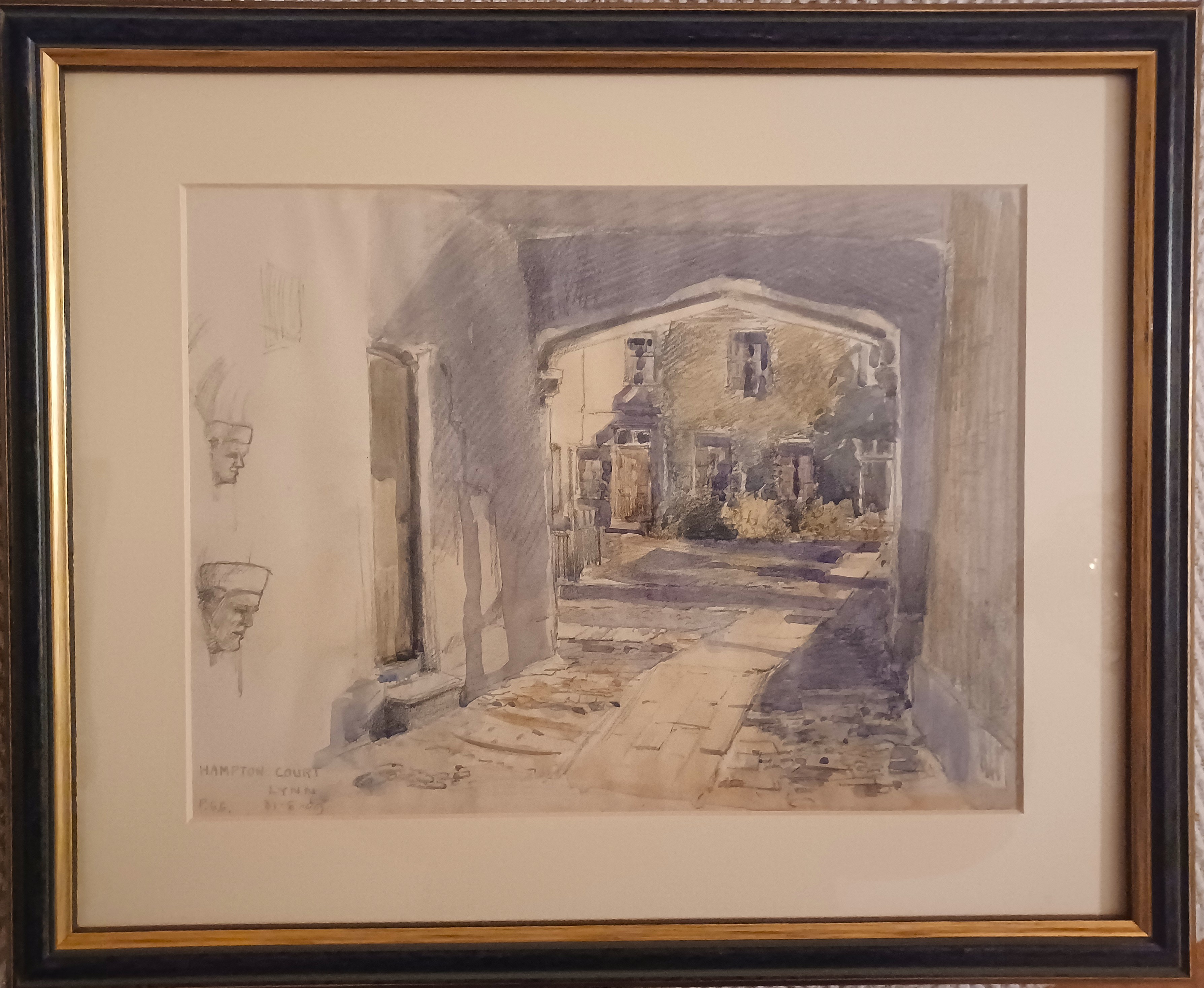 Description: This is a Kings Lynn, Norfolk artist, watercolour with monogram PPG. The artwork study is of Hampton Court in Kings Lynn town. Dated 31-08-09